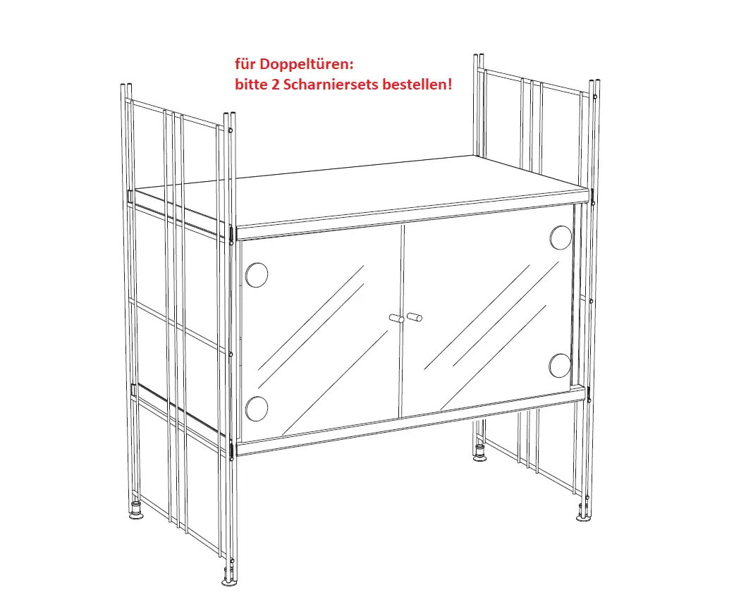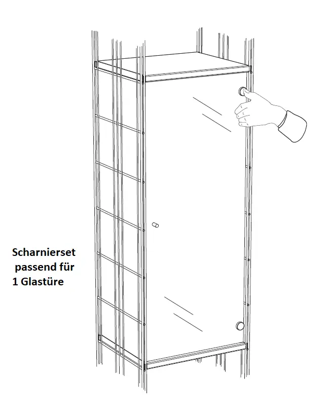 Scharnierset zur Befestigung für 1 Milchglas- oder 1 Schwarzglastür der B III 380 Serie (Glastüren für Regale in 38 cm Tiefe):
