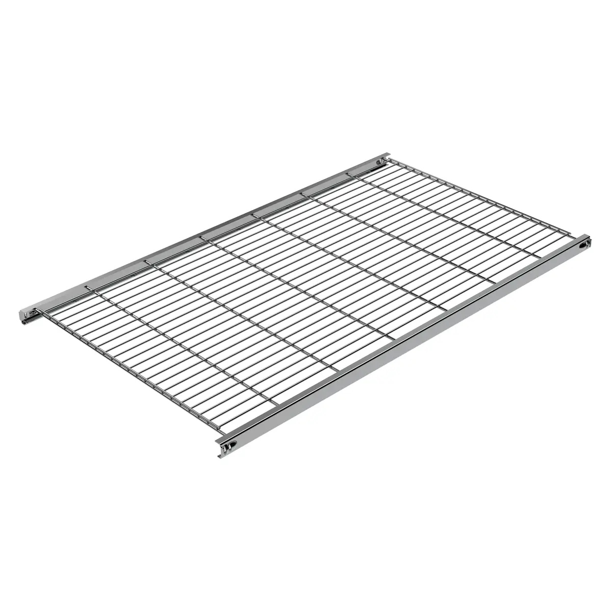 1x Gitterbord, 610 mm tief, 401 - 488 - 605 - 654 - 758 - 910 - 1062 oder 1214 mm breit, Metall, verchromt, mit integrierten Halterungen